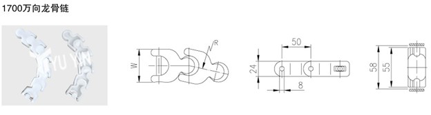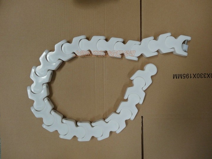 龍骨鏈板材質(zhì):POM,顏色為白色/綠色,銷軸為不銹鋼 包裝:20節(jié)/米